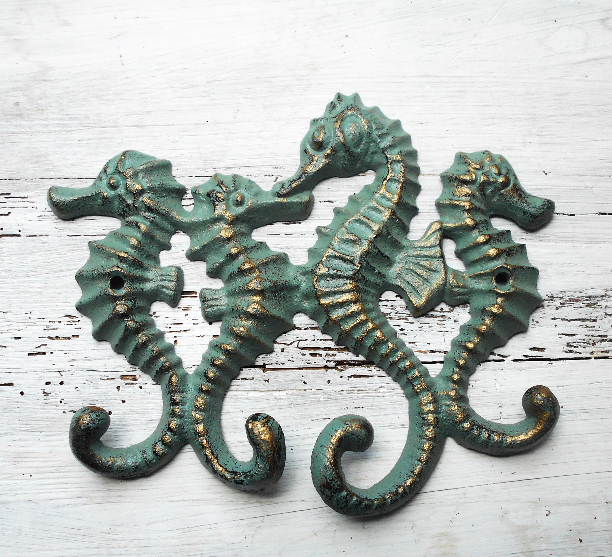 Garderobenhaken, Gusseisen, Seepferdchen.