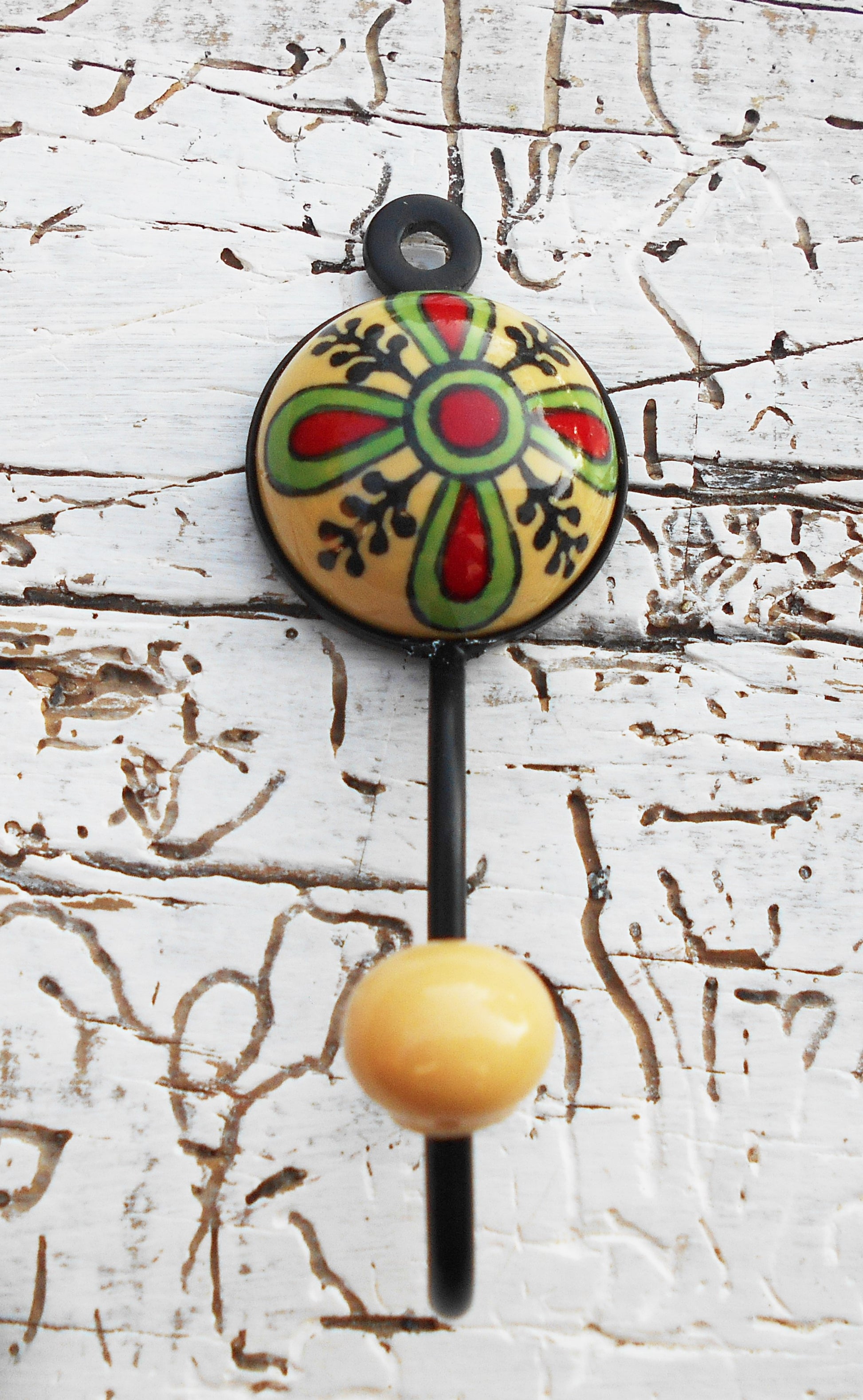 Garderobenhaken, Keramikhaken, Wandhaken, Kleiderhaken, gelb