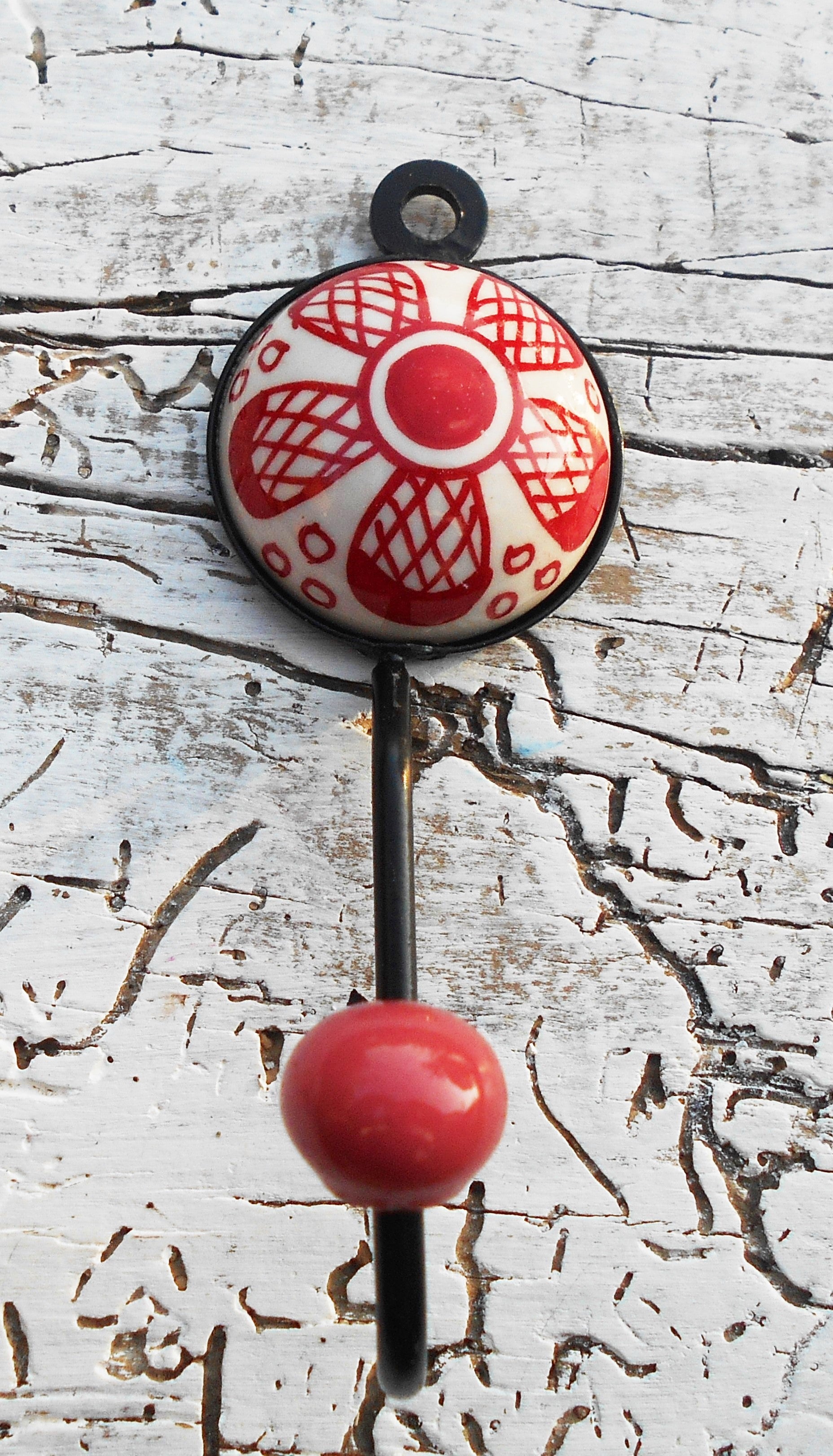 Garderobenhaken, Keramikhaken, Wandhaken, Kleiderhaken, rot