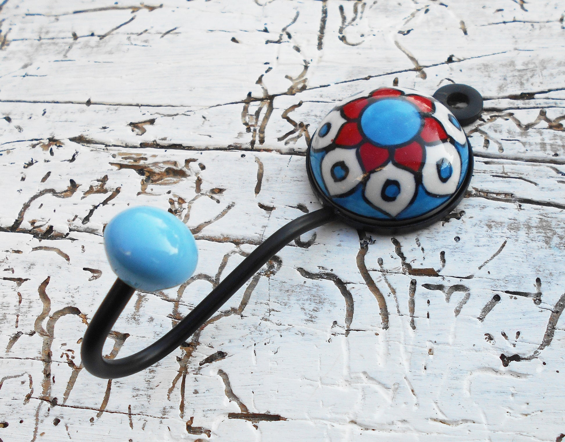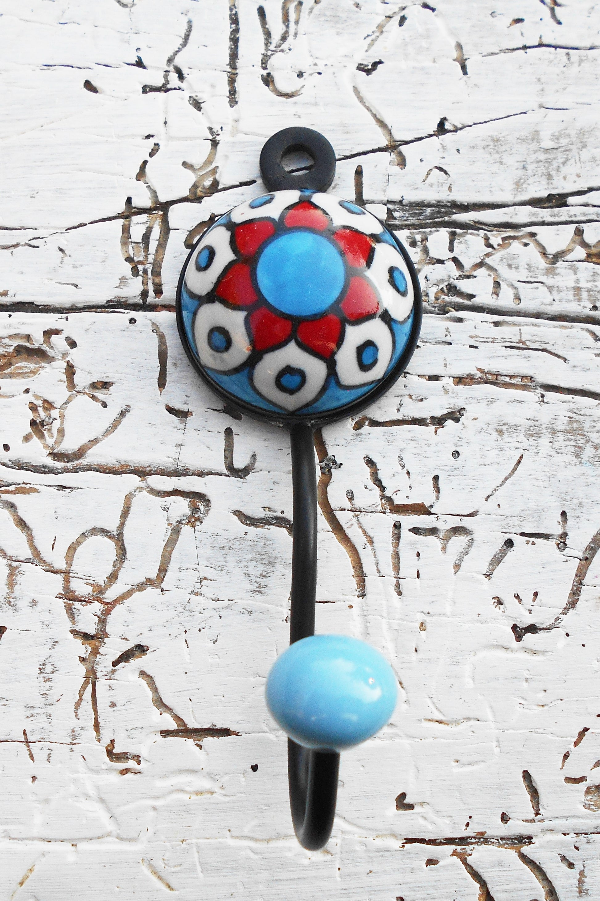 Garderobenhaken, Keramikhaken, Wandhaken, Kleiderhaken, hellblau