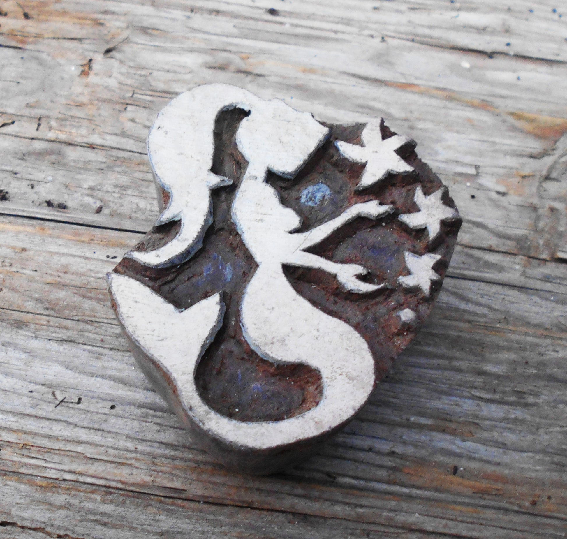 Holzdruckstempel, Stoffdruckstempel, Textilstempel, Motivstempel, Nixe