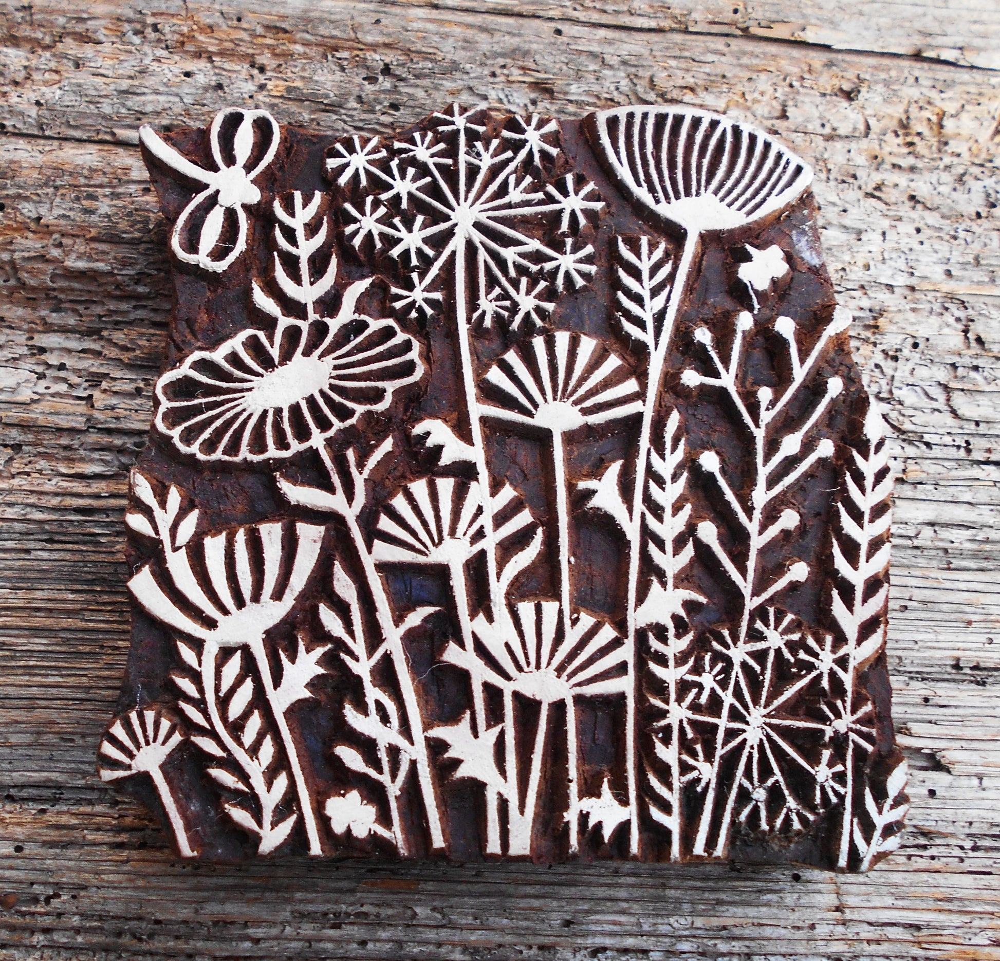 Holzstempel Stoffdruck, Wildblumenwiese S30