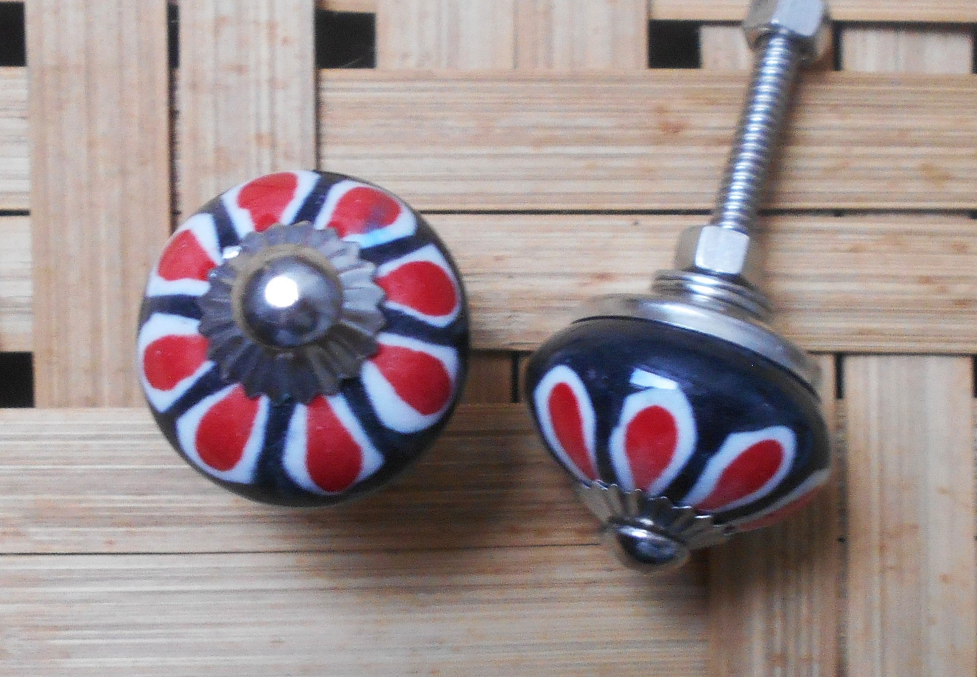 Handbemalter, runder Keramikgriff.