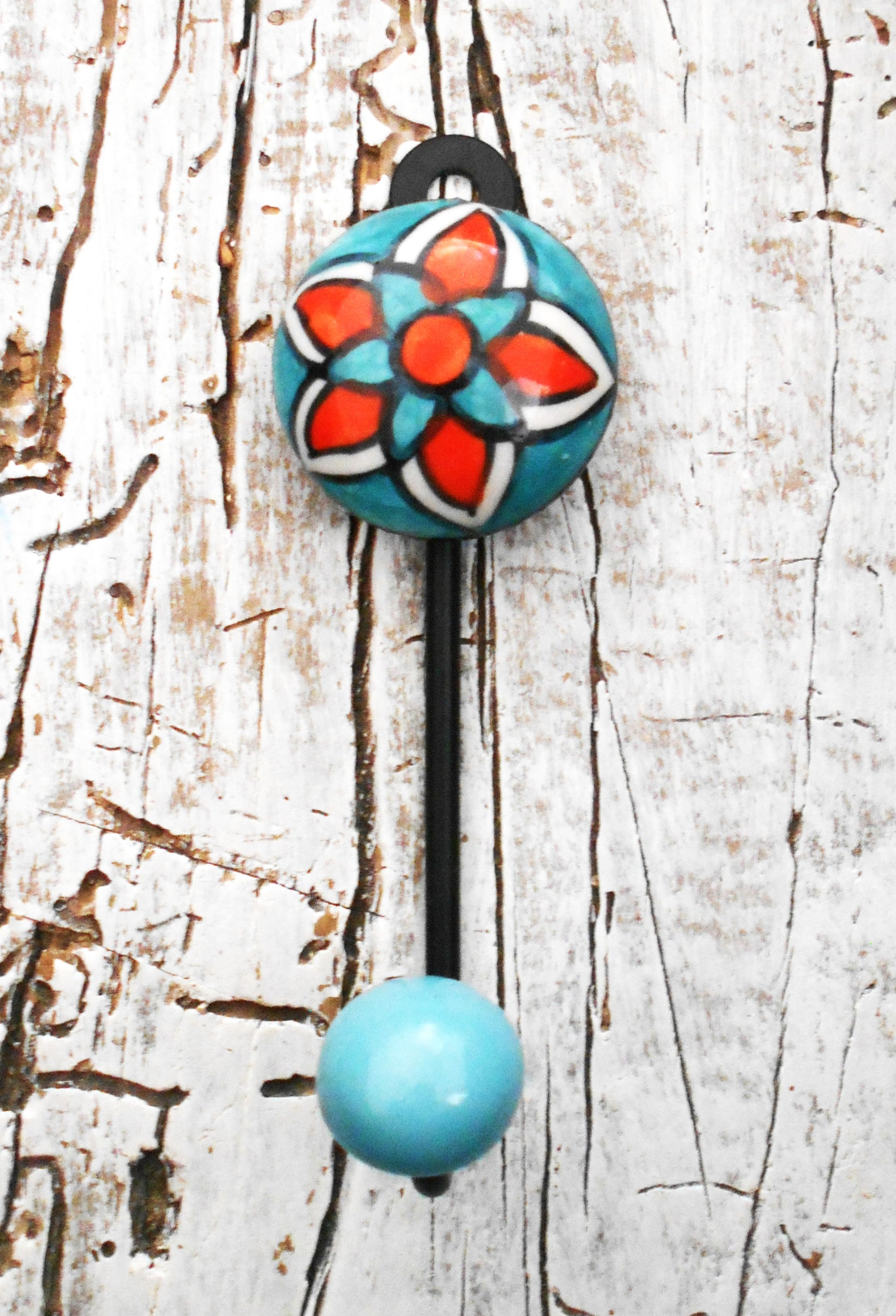 Keramikhaken, Wandhaken, Kleiderhaken, Garderobenhaken, klein, hellblau