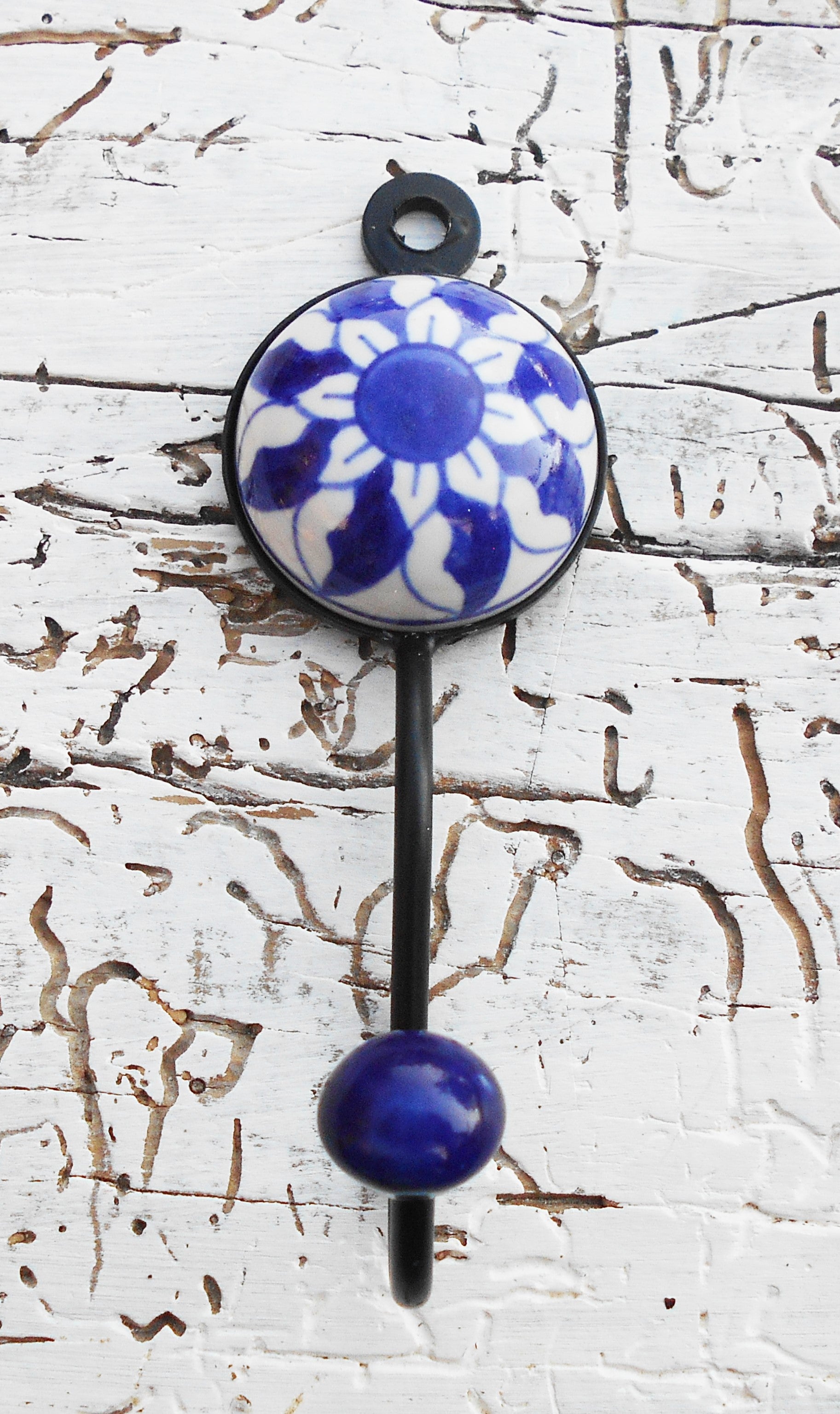 Garderobenhaken, Keramikhaken, Wandhaken, Kleiderhaken, blau