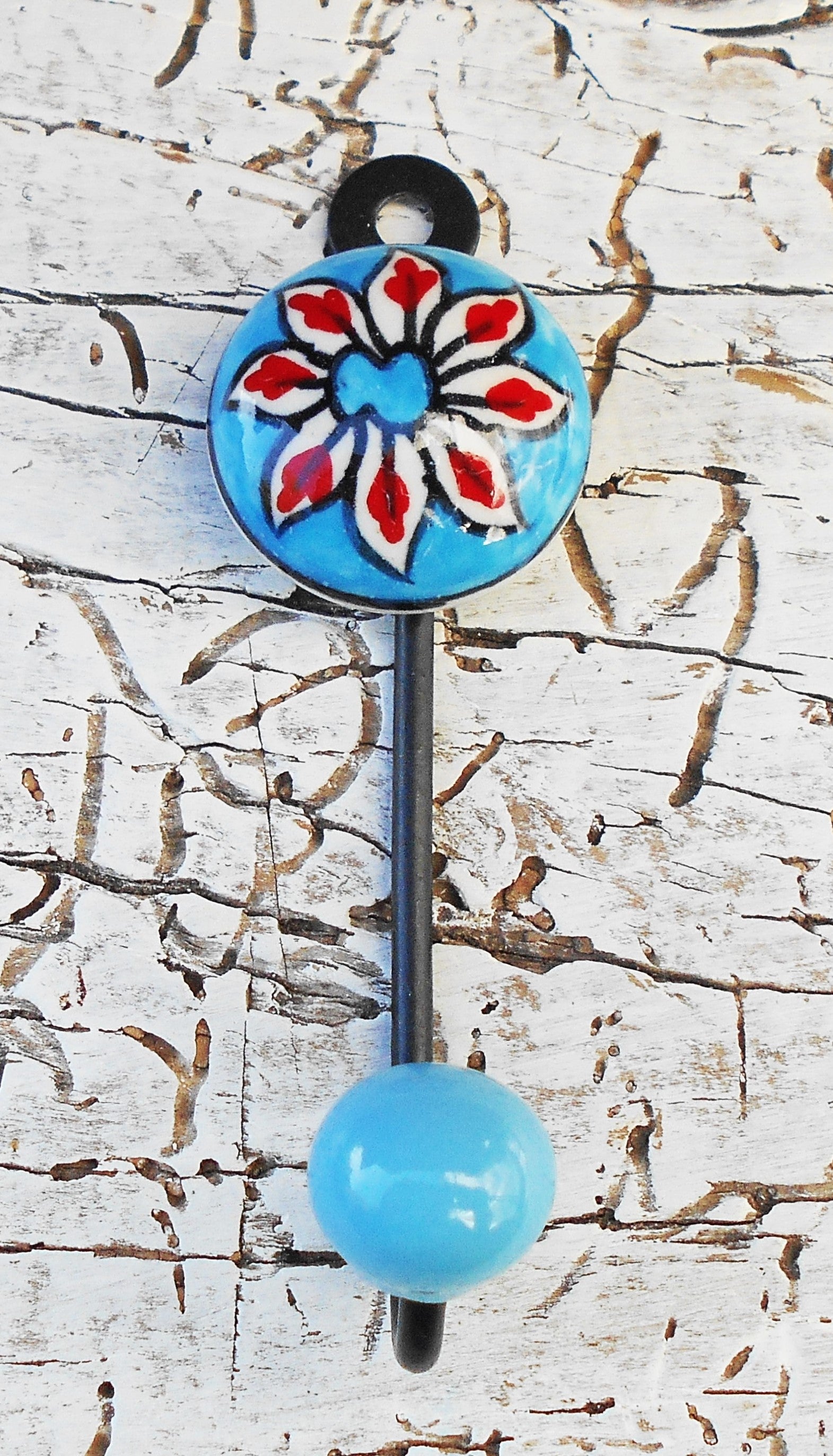 Keramikhaken, Wandhaken, Kleiderhaken, Garderobenhaken, klein, hellblau