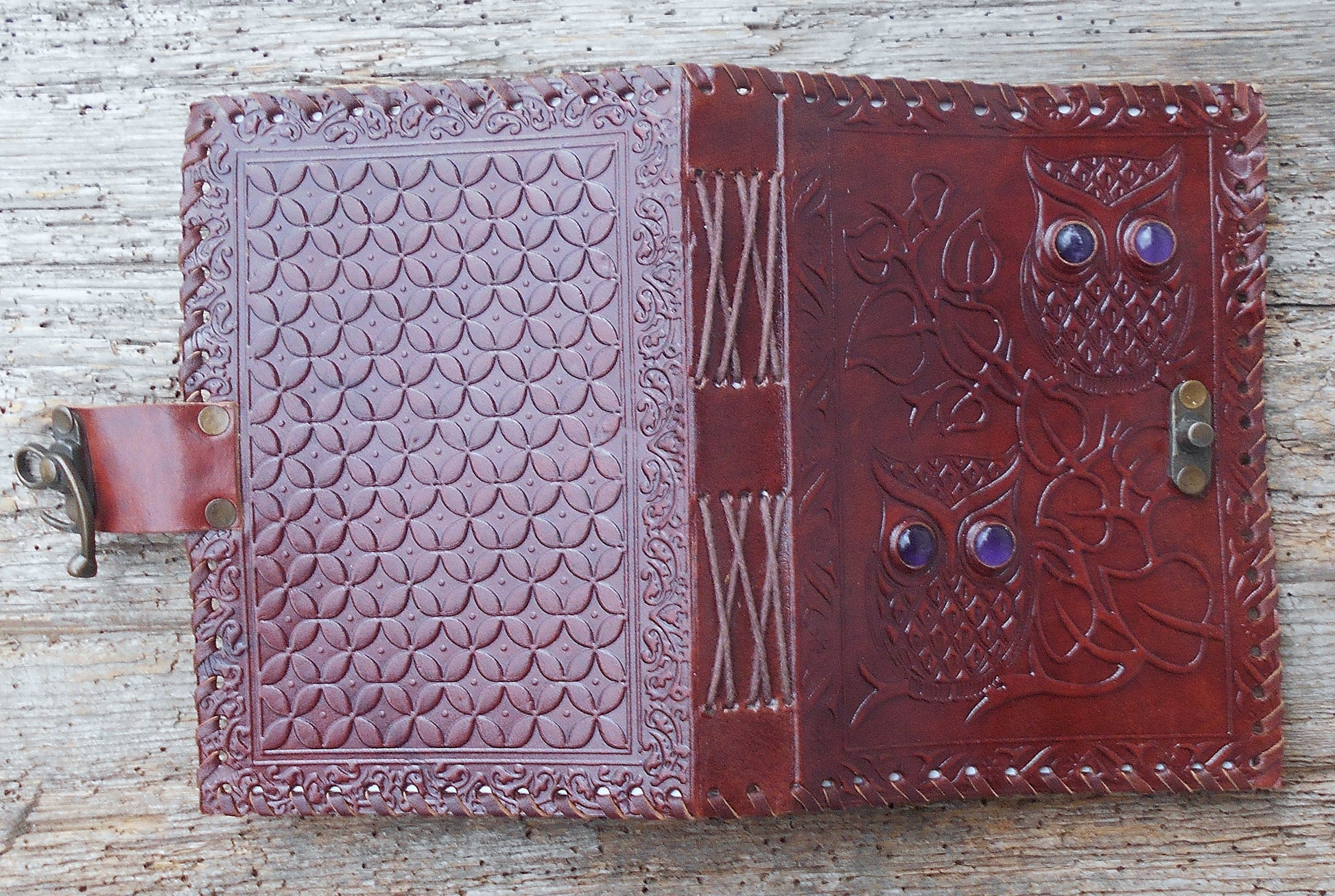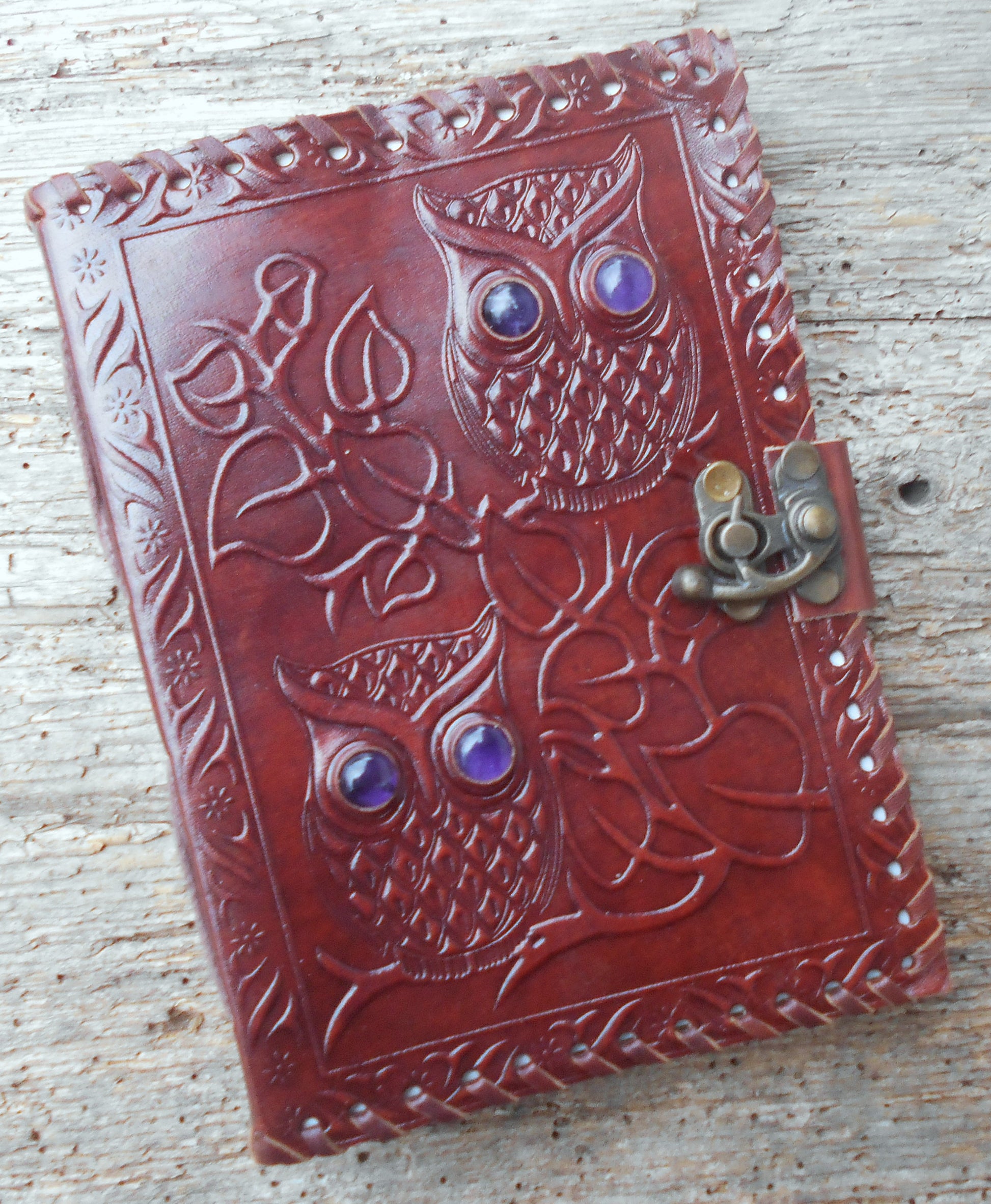 Leder-Notizbuch, handgearbeitet, Tagebuch, handgeschöpftes Papier, braun, Eule