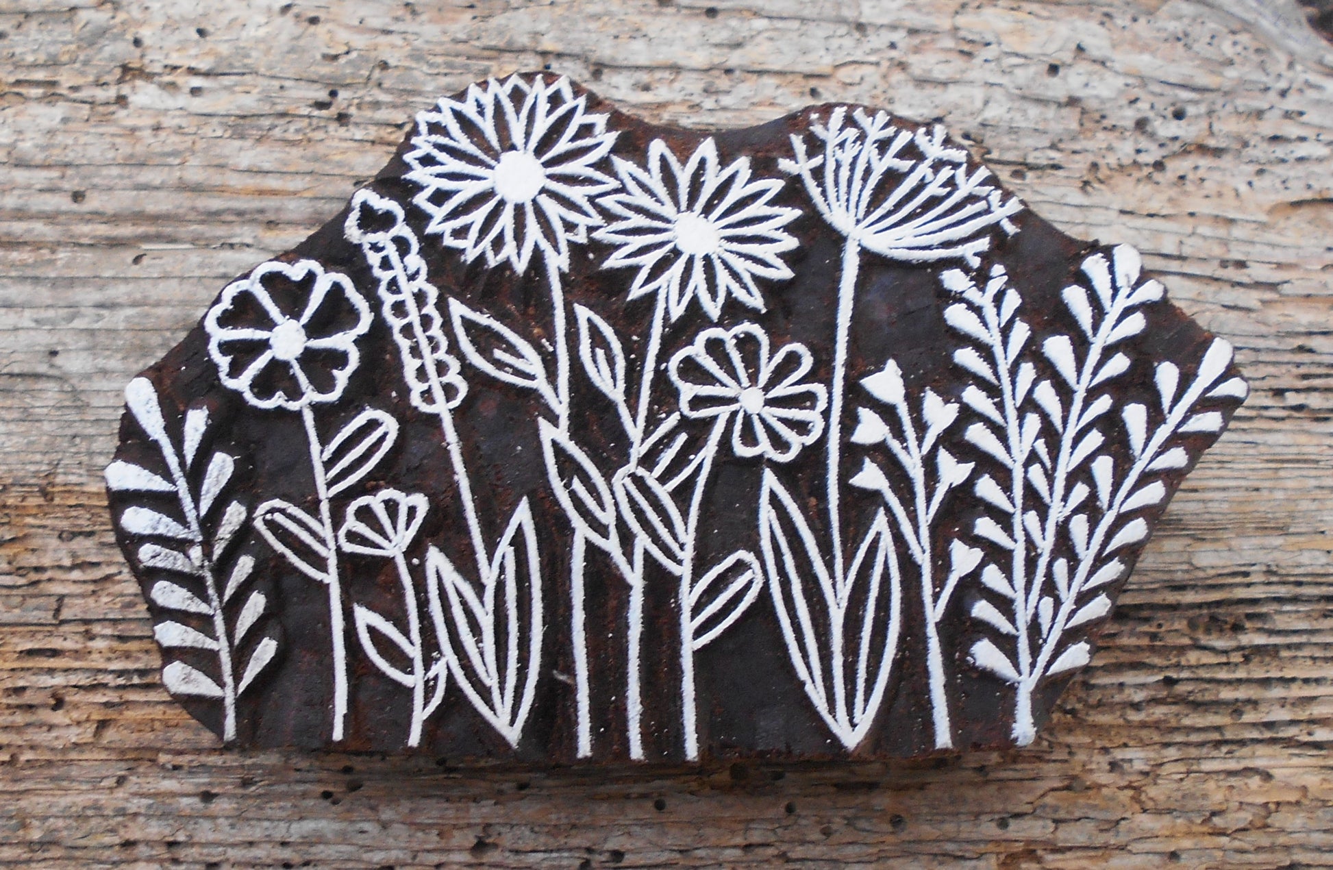 Stoffdruck Stempel, Holzdruckstempel, Motivstempel, Blaudruckstempel, Textildruck-Kräuterwiese