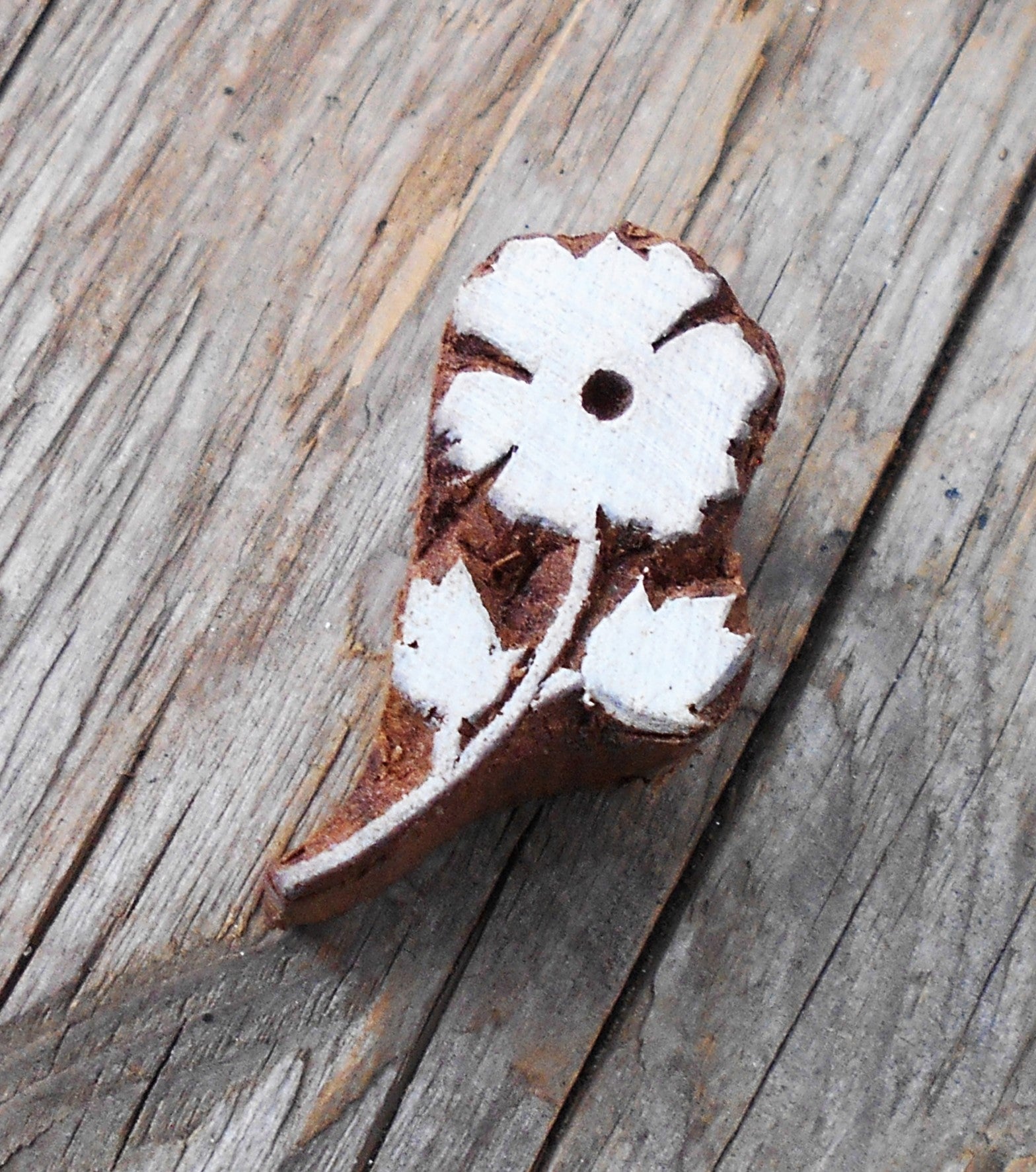In Handarbeit gefertigter Holzstempel für Textildruck.
