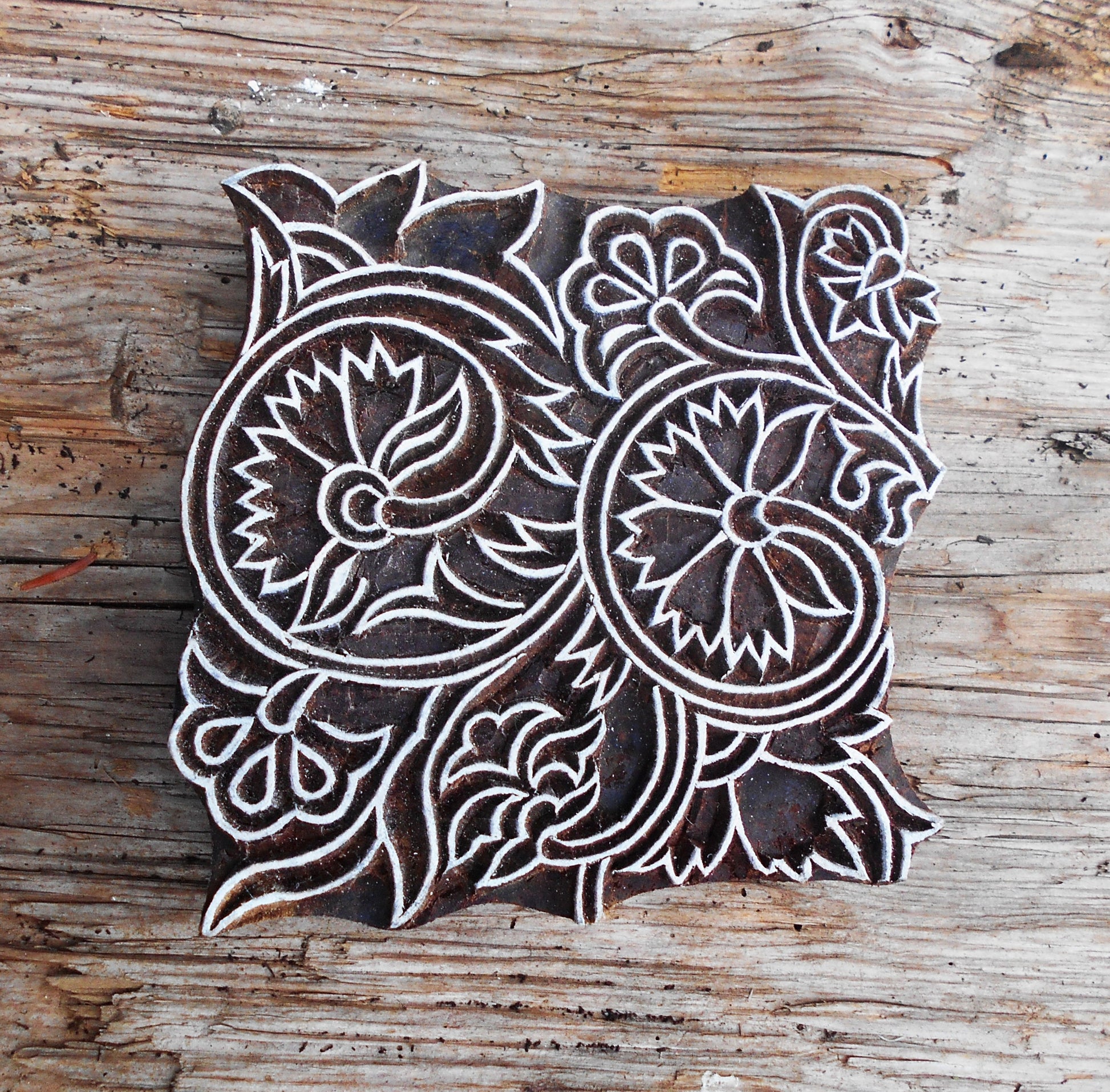 Wunderschöner Textilstempel aus Holz gearbeitet im Blumendesign.