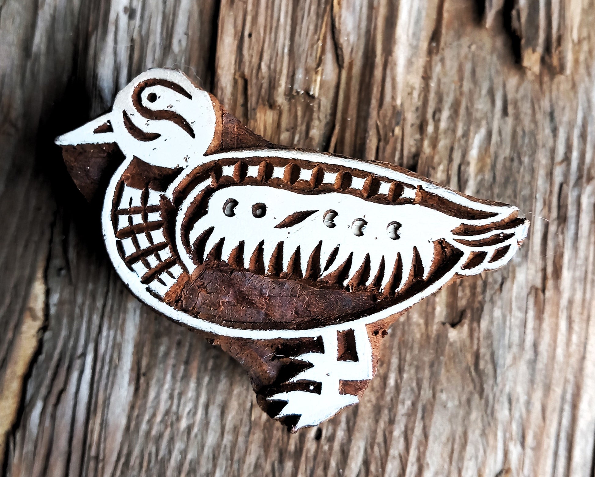Stoffdruckstempel aus Holz in Form einer Ente.