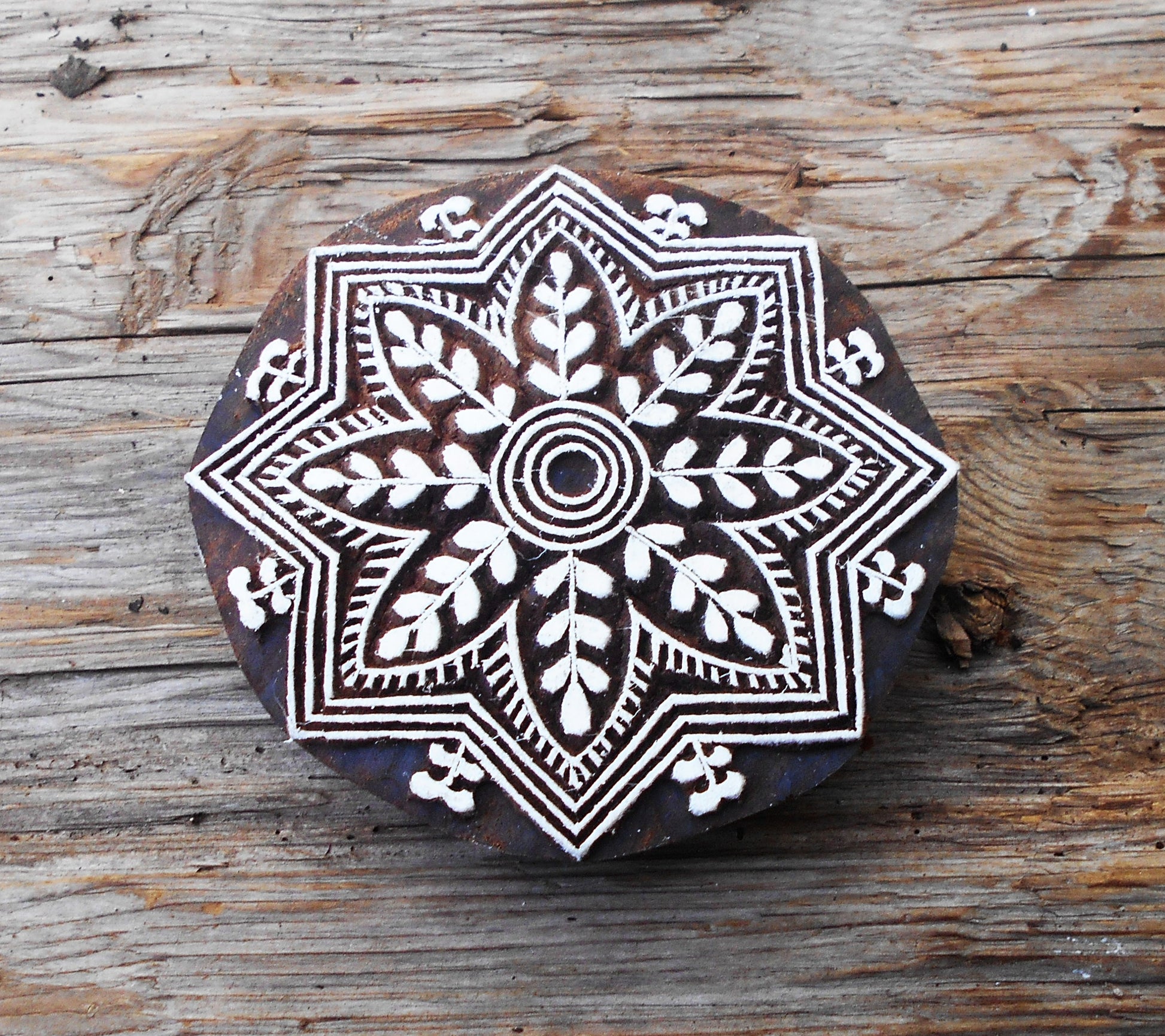 Textilstempel aus Holz gearbeitet.