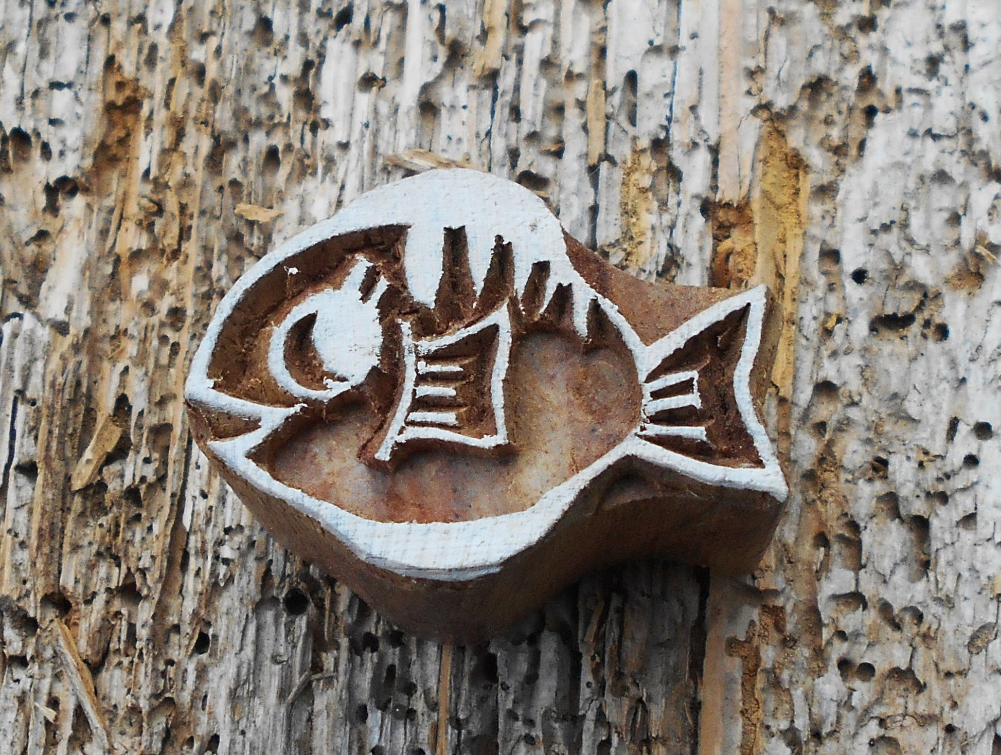 Tierstempel, Stoffdruckstempel, Holzdruckstempel, Blaudruckstempel, Fisch